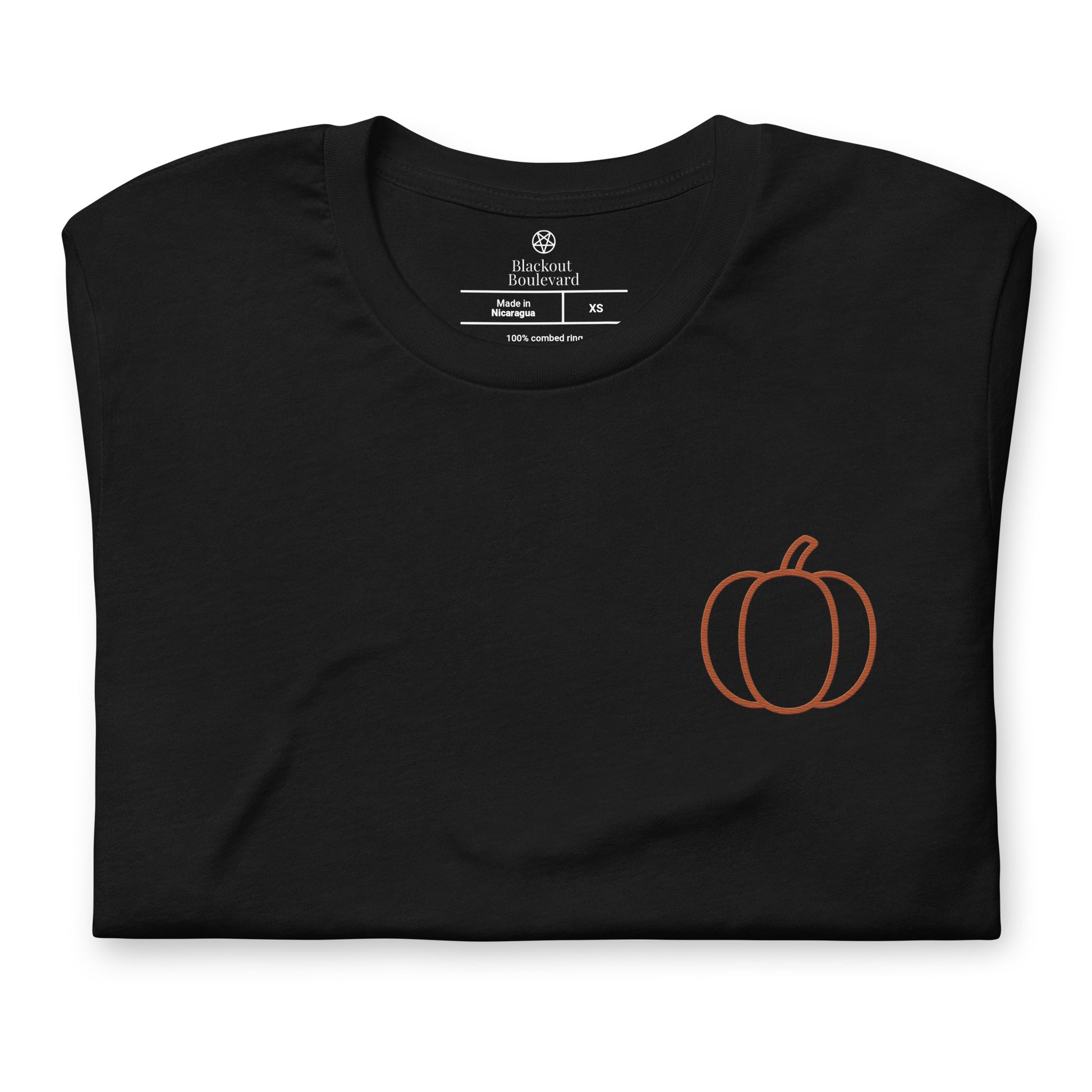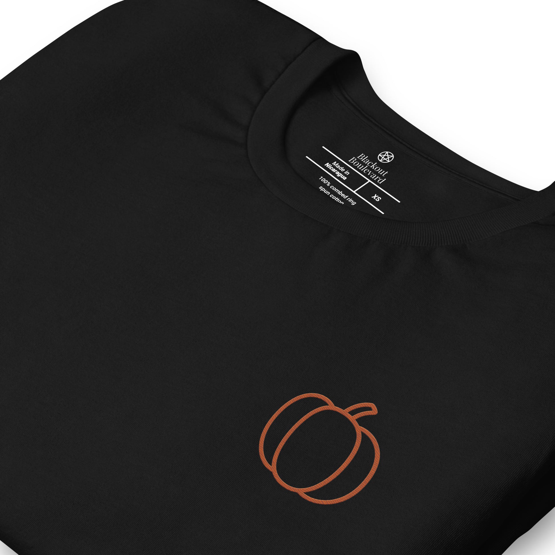 Halloween stitched in brighter tones. The Orange Pumpkin T-Shirt is bold, eerie minimalism with a seasonal edge—clean lines, stark black, and a flash of orange.