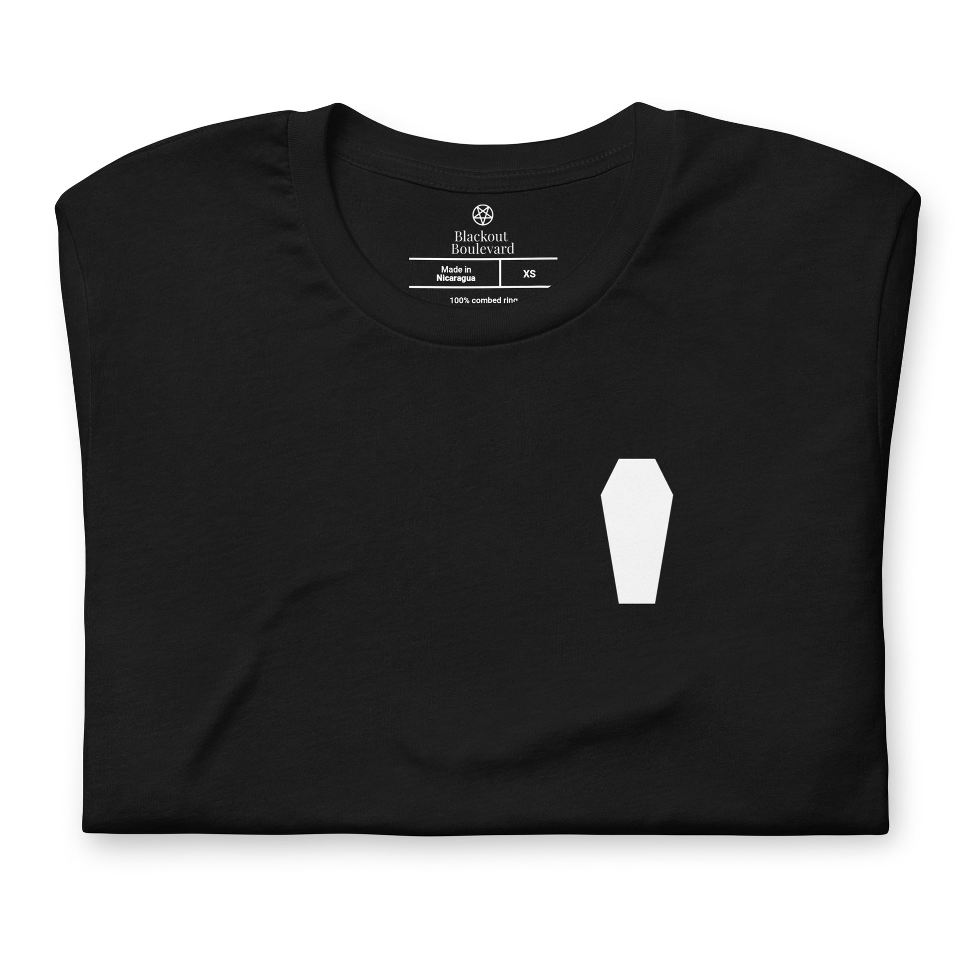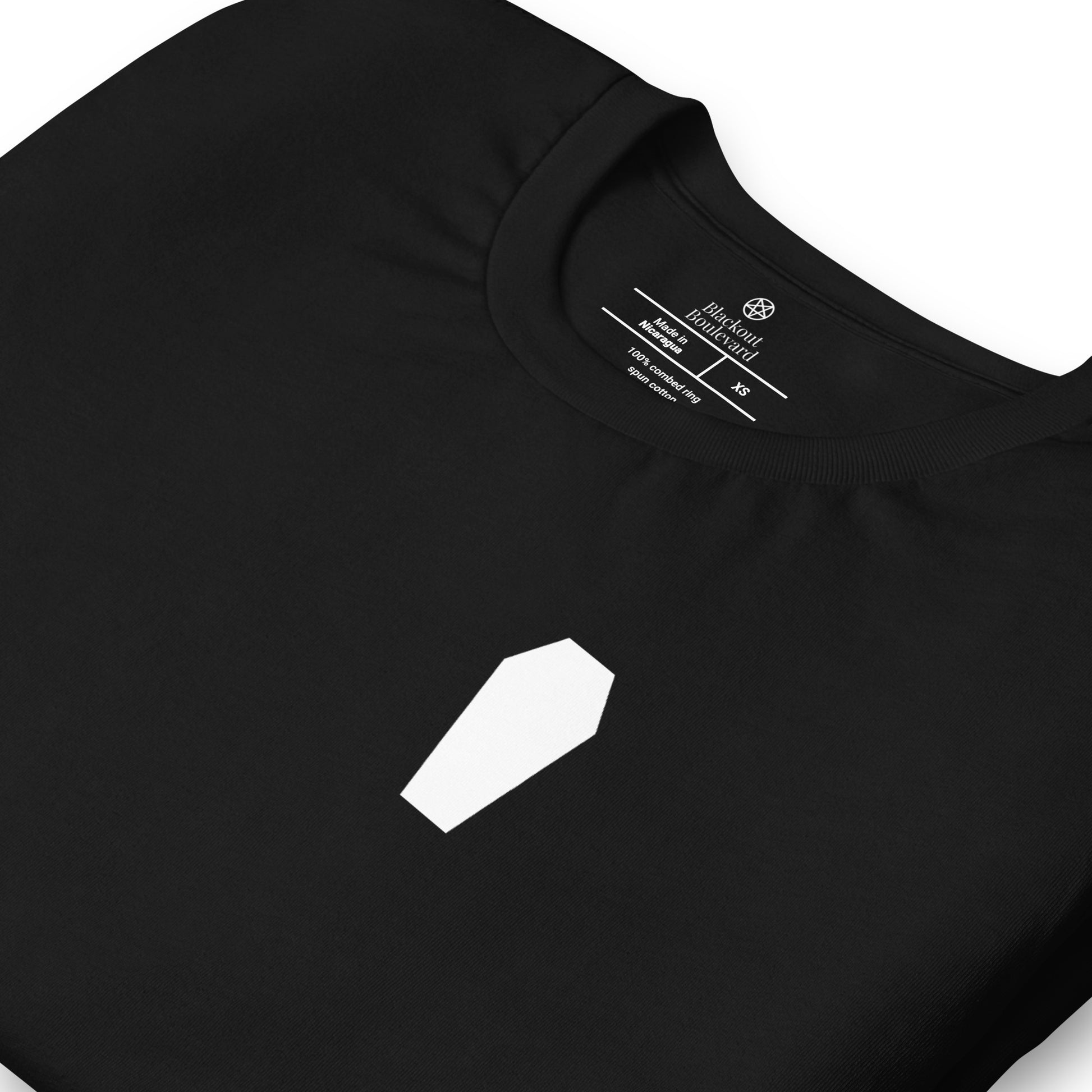 Made from soft black cotton with a unisex fit, it’s lightweight yet durable, designed for everyday wear with gothic understatement.